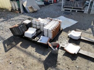 今回は、自社の現場で使用した白い瓦を提供します。少しほこりをかぶっていたので、一枚ずつ洗ってきれいにしました。
