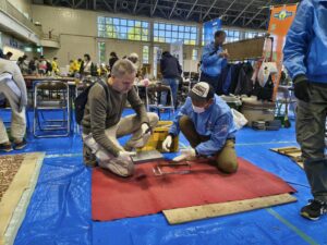 今年は体験内容を見直し、安城しごとフェスで特に盛況だった“のし割り体験”と“棟積み体験”を実施。