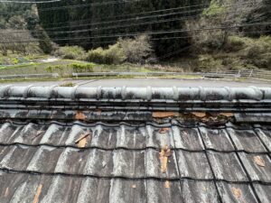 瓦の焼きがあまいタイプで、北側の棟ののし瓦が凍てて割れていたり、瓦のズレや剥がれも確認できました。